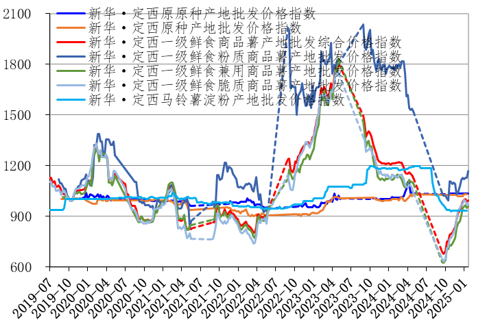 综上所述,春节前全国蔬菜及商品薯批发价格持续上涨,定西马铃薯产业指数表现强劲,但不同品种市场表现各异。同时,国内薯制品市场也呈现震荡持稳态势。预计春节后随着物流成本下降和市场需求变化,相关价格将继续波动。