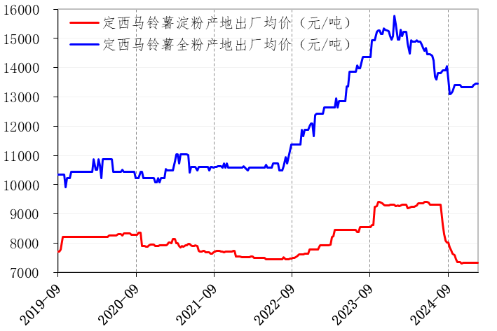 伴随春节前后运输成本上涨,全国初级薯制品出货暂时停滞且价格震荡持稳。截至2025年1月23日,定西马铃薯淀粉和全粉出厂均价均环比持平,但同比下跌幅度较大。然而,从海关总署数据来看,我国初级薯制品进口量环比上涨、同比上涨,进口均价也呈现同比上涨态势。这预示着春节后定西乃至全国初级薯制品出厂价有望继续上涨。