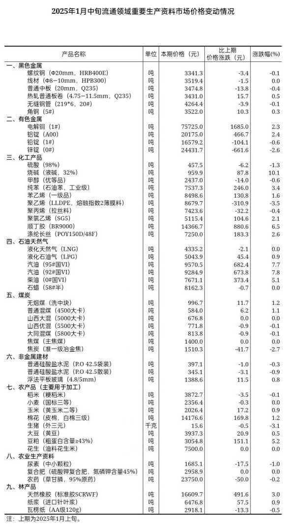 中新网1月24日电 据“统计微讯”微信公众号最新消息,全国流通领域9大类50种重要生产资料市场价格监测数据已出炉。数据显示,与2025年1月上旬相比,1月中旬时,有23种产品价格呈现出上涨趋势,19种产品价格下跌,另有8种产品价格保持稳定,未出现明显波动。