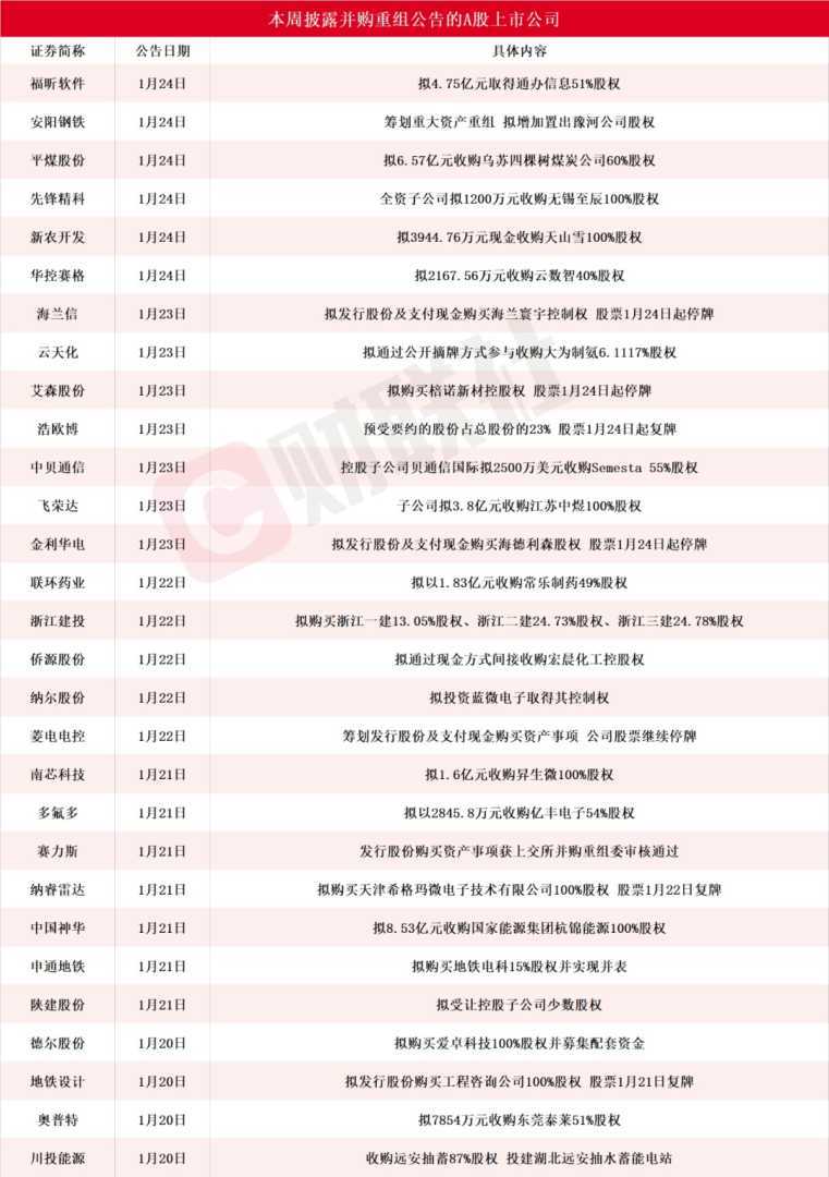 这些并购重组事件不仅有助于提升上市公司的竞争力和盈利能力,也为市场提供了更多优质的投资标的。随着政策的持续推动和市场的不断发展,预计并购重组活动将继续保持活跃态势,为A股市场的稳健发展注入新的动力。