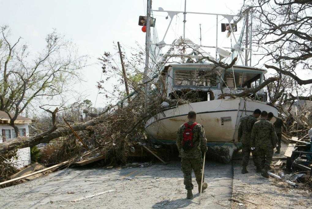 2005年9月10日,在美国路易斯安那州新奥尔良市,一艘游艇被飓风“卡特里娜”卷上了马路。新华社记者吕明响摄