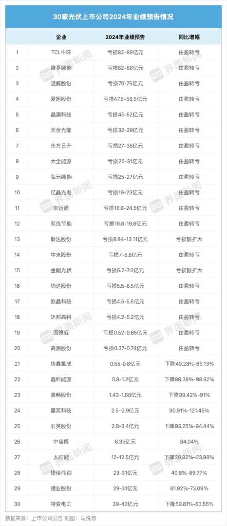 2024年光伏行业年报出炉:七成企业亏损,龙头业绩惨淡