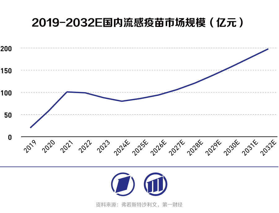 此外,流感疫苗价格的下降虽然短期内会压缩企业利润,但接种成本的降低有助于提升我国流感疫苗的渗透率。弗若斯特沙利文预测,到2025年,国内流感疫苗市场规模将重新开始增长,至2032年时将达到198亿元,2023年至2032年的年复合增长率达9.4%,高于海外市场7.9%的增速。