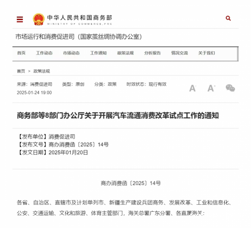 近日,商务部携手其他七部门联合发布了《关于开展汽车流通消费改革试点工作的通知》(以下简称《通知》),规划在2025至2027年间实施汽车流通消费领域的改革试点工作。此《通知》的出台,标志着我国在推动汽车消费市场转型升级方面迈出了坚实的一步,业内人士纷纷指出,尽管其中部分内容在以往政策中已有涉及,但此次《通知》更加具体化,针对性显著增强。