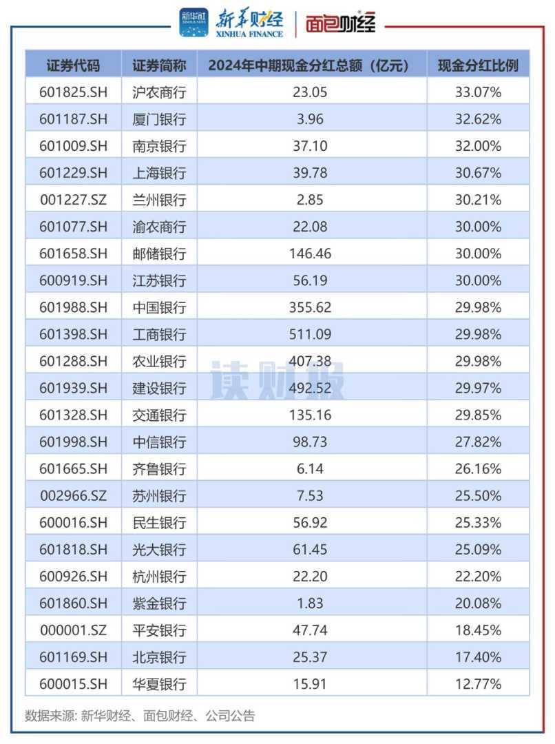 2024年A股上市银行分红创新高,多家银行中期分红比例超30%