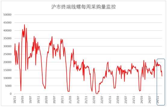 图3. 2018年以来沪市终端线螺每周采购量监控数据变化情况