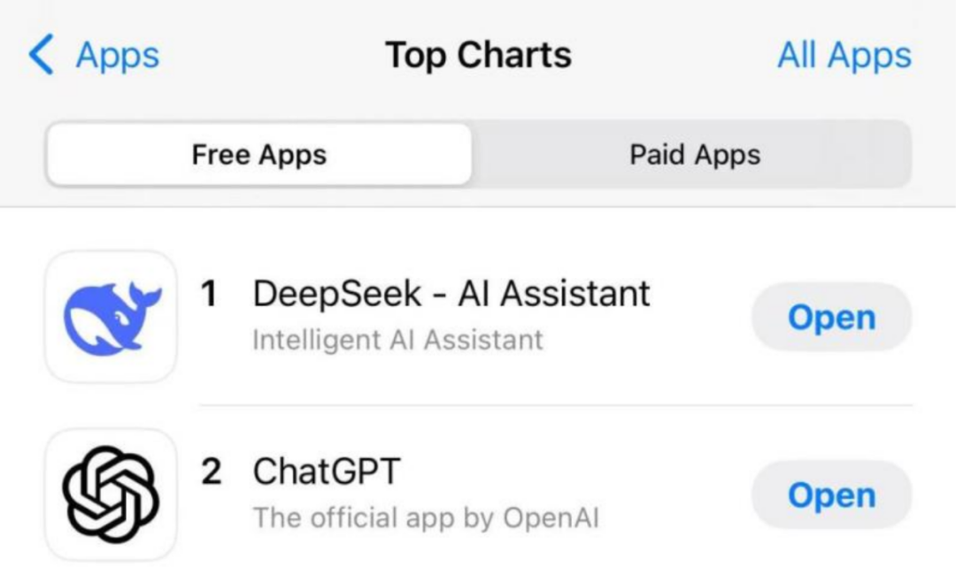 在刚刚过去的周末,DeepSeek无疑是全球科技界的热门话题。国产AI黑马DeepSeek不仅在全球科技界引起广泛关注,还在1月27日登顶苹果中国地区和美国地区应用商店免费App下载排行榜,在美区下载榜上更是超越了ChatGPT。