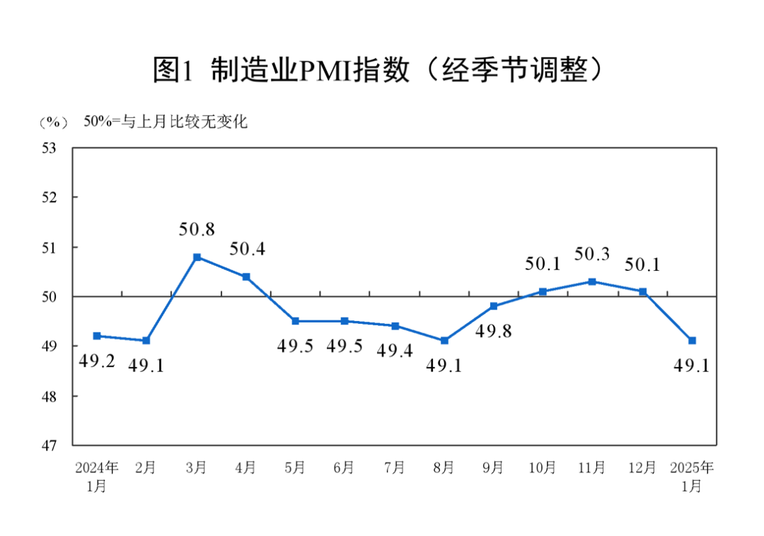 2025年1月中国采购经理指数发布:制造业回落,非制造业及综合PMI保持扩张