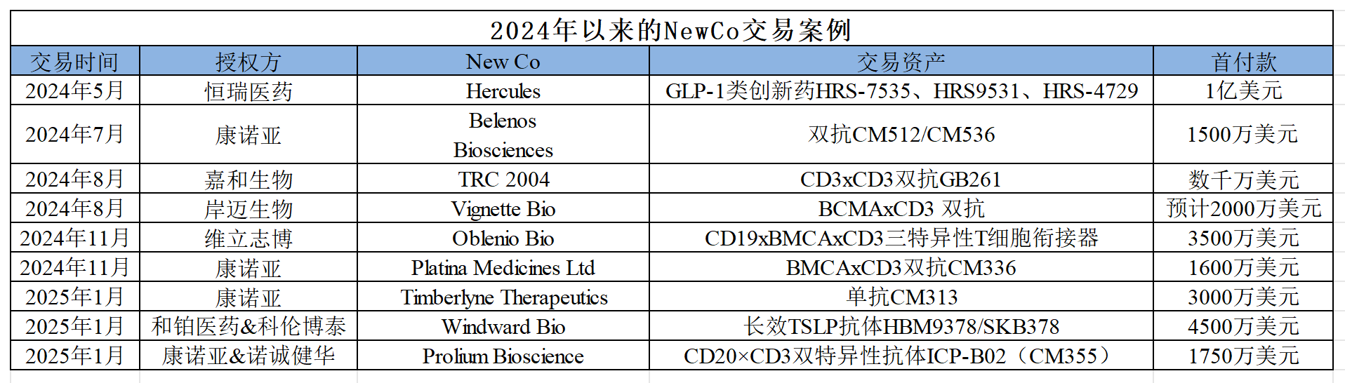 业内人士认为,在当前资本环境下,NewCo不失为促进创新药研发和临床研究的有效路径。2024年5月,恒瑞与Hercules的NewCo交易,以及康诺亚、嘉和生物和安迈生物等公司通过NewCo模式实现出海,彻底引爆市场。一位深耕国际生物医药并购领域的律师透露,大量biotech都在寻找NewCo的机会。