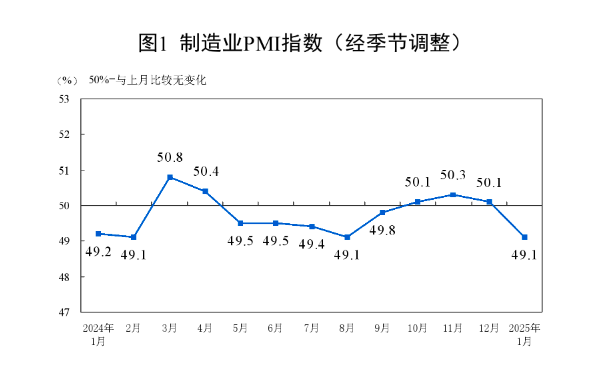 随着春节假期的日益临近,企业员工纷纷踏上返乡之旅,这一季节性因素显著影响了我国1月份的制造业表现。国家统计局于1月27日正式发布的数据显示,2025年1月份制造业采购经理指数(PMI)滑落至49.1%,较上月下降了1.0个百分点,标志着制造业景气水平有所回落。