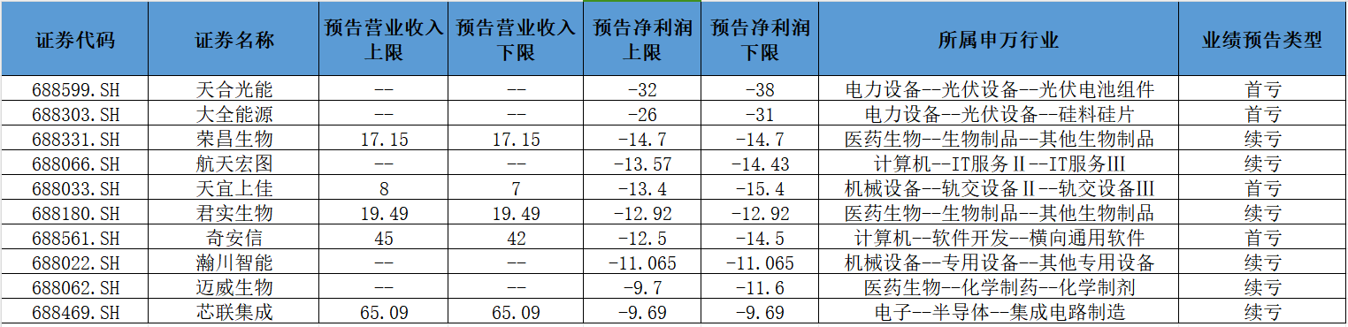然而,医药生物、光伏等板块业绩承压。在已预告2024年归母净利润上限亏损最多的10家科创板公司中,有3家属于医药生物行业公司,另有2家属于光伏设备领域企业。这反映了这些行业在当前经济环境下的挑战和困境。