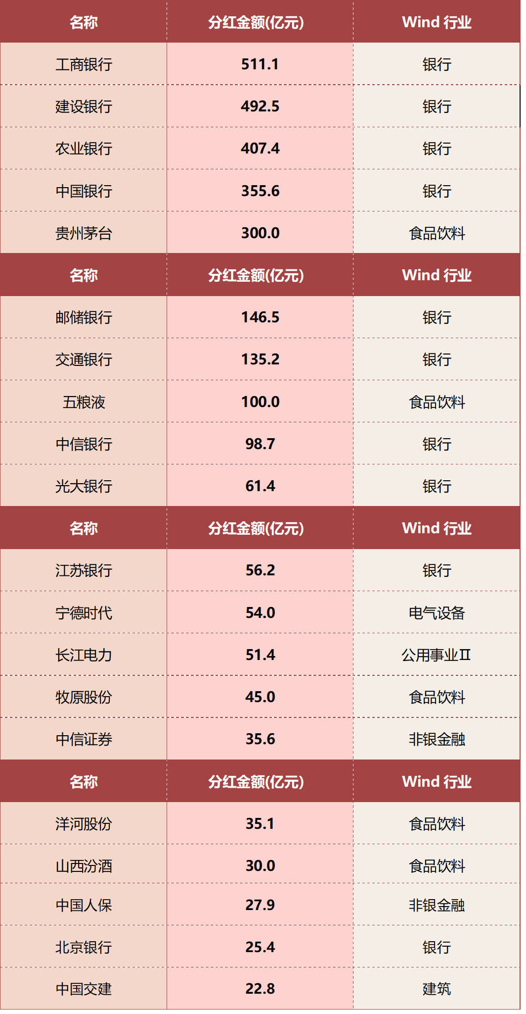 在分红大军中,六大国有银行无疑是分红的主力军,它们共计分红2048亿元,占据了分红总额的半壁江山。此外,“五瓶酒”(茅台、五粮液、汾酒、泸州老窖等白酒企业)也表现不俗,分红金额接近500亿元。同时,长江电力、陕西煤业等被誉为“现金奶牛”的企业也慷慨分红61亿元。值得注意的是,宁德时代、赛力斯等民营科技企业也积极参与分红,分红金额达到59亿元。此外,中信证券、中国银河等17家上市券商也分红35亿元,展现了证券行业的活力与实力。