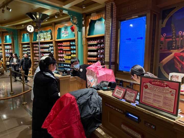 来自山东的孙同学一家三口,自驾近十小时来到上海,第一站就直奔迪士尼小镇的世界商店,抢购价值598元却内含吊牌价不低于1400元的精选商品组合的2025新春大礼包。礼包内商品随机发售,每日数量有限,售完即止,消费场面火爆。