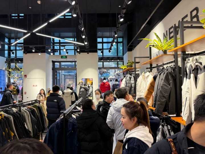 比斯特上海购物村一家户外运动品牌门店内顾客络绎不绝。沈思怡摄