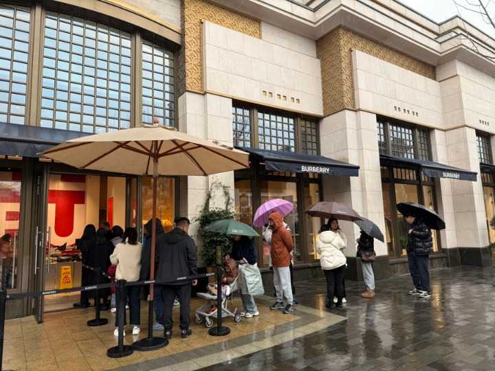 比斯特上海购物村多家门店前排起长龙。沈思怡摄