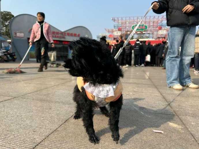 (春节期间,萌宠们穿上新衣,在集市上欢度佳节,财联社记者摄)