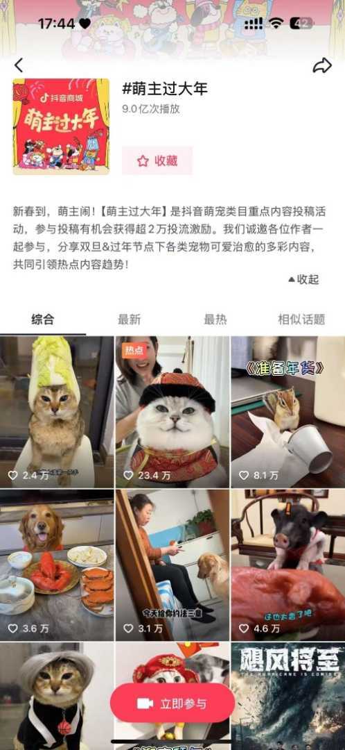 在抖音平台上,宠物拜年短视频也是数不胜数,其中“萌主过大年”话题相关视频播放量更是冲破9亿次大关,热度非凡,为这个新春增添了更多欢乐和色彩。