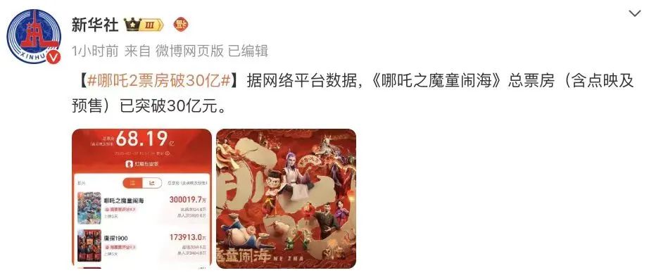 截至目前,《哪吒2》已打破包括过去三年春节档影片档期票房纪录、中国影史动画片首映日票房纪录在内的17项影史纪录,展现出强大的市场号召力和观众认可度。