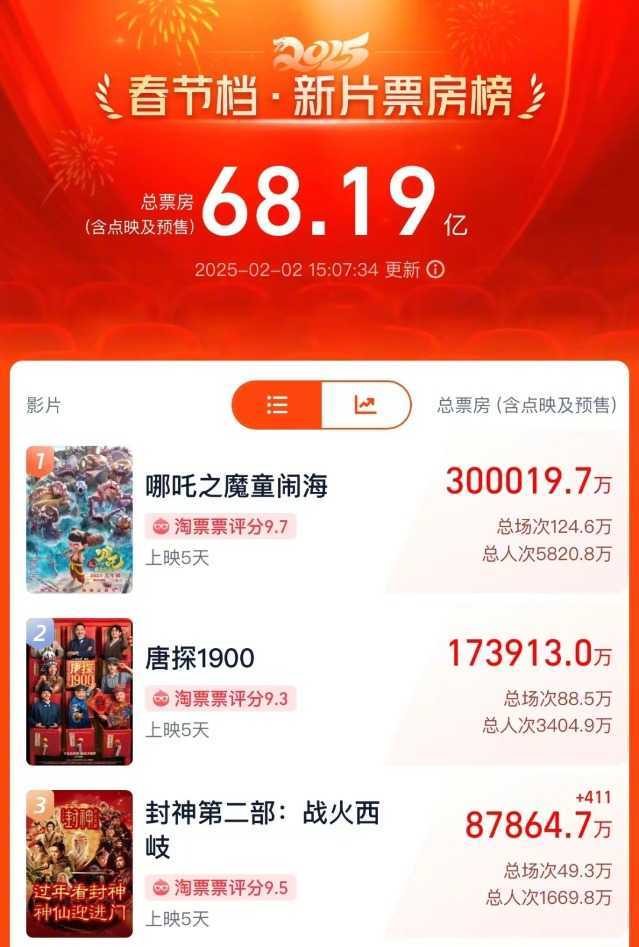 《哪吒之魔童闹海》、《唐探1900》以及《封神第二部:战火西岐》三部影片表现尤为突出,