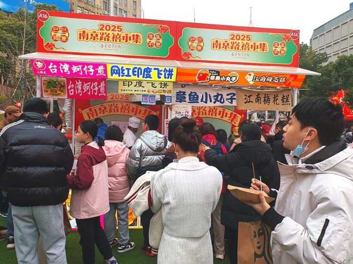 记者在现场观察到,节日期间南京路步行街世纪广场举办的“2025南京路禧市集”洋溢着浓厚的节日气氛,江南梅花糕、非遗糖画糖人、章鱼小丸子等特色美食摊点吸引了众多游客驻足品尝,旁边的“繁花”文创产品也备受青睐。置地广场的上海伴手礼临街店推出了现场试吃体验活动,蝴蝶酥、龙须酥、大白兔奶糖等包装精美的上海特产更是让游客们争相购买。