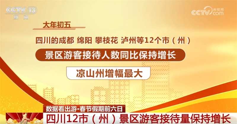尽管春节假期已接近尾声,但游客的出游热情依然不减。据四川省文化和旅游产业领导小组办公室透露,截至2月2日(大年初五),成都、绵阳、攀枝花、泸州等12个市(州)的景区游客接待人数同比继续保持增长态势,其中凉山州增幅最大,达到了34.95%。