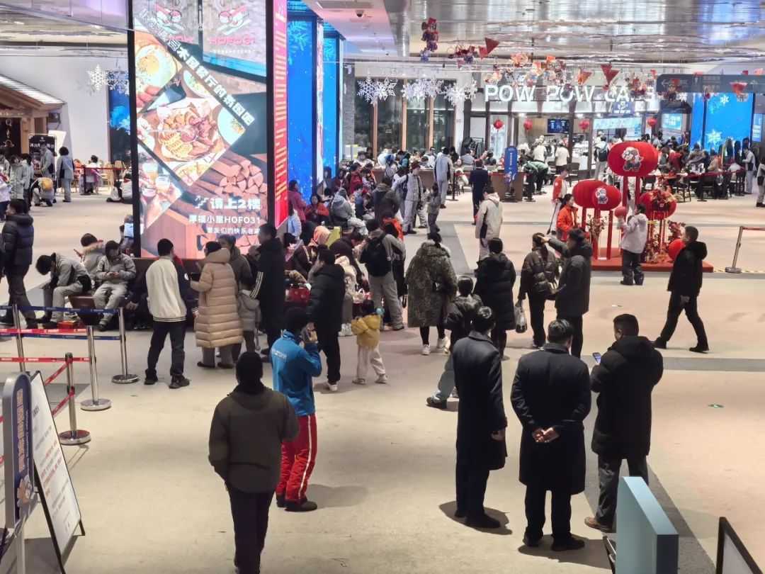 当天,耀雪的活动大厅内人头攒动,热闹非凡。这座于2024年9月开业的冰雪度假综合体,总建筑面积约35万平方米,拥有全球最大室内雪场,面积超过9.8万平方米,同时还涵盖了嬉水乐园、冰场、商业、酒店等多种业态。耀雪的开业无疑为上海的主题乐园市场增添了冰雪旅游的新亮点。