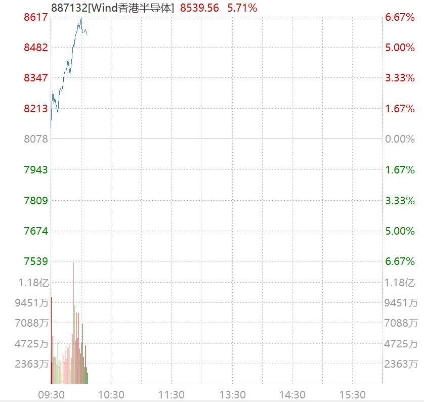盘面上,港股半导体板块成为领涨先锋,直线拉升。同时,硬件设备、消费、汽车、非银金融等板块也表现出色,集成电路、智能终端、智能家居等概念股同样备受追捧。