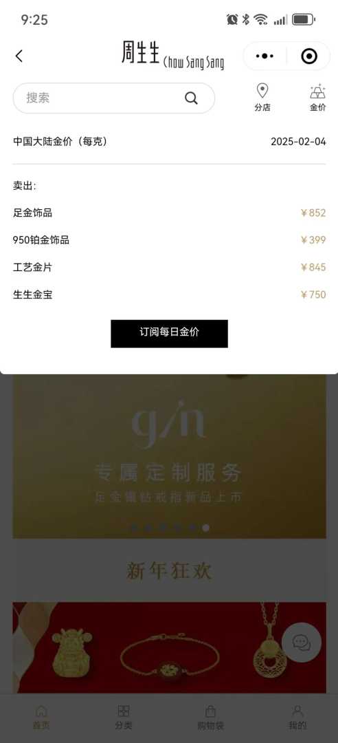 当前,品牌金饰市场迎来价格新高,克单价800元以下商品几乎绝迹。2月4日,周大福官网公布的足金饰品价格为846元/克,而周生生更是报出了852元/克的高价,两者均刷新了品牌足金饰品售价的历史记录。