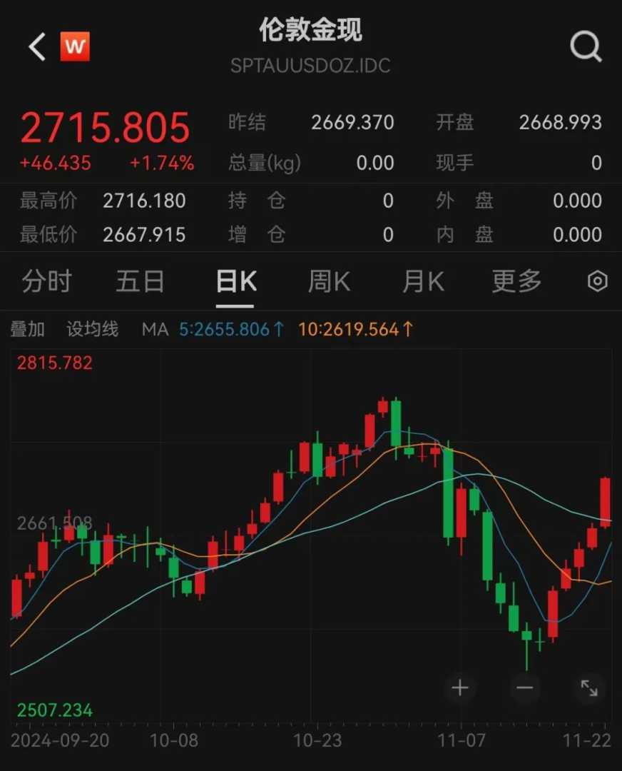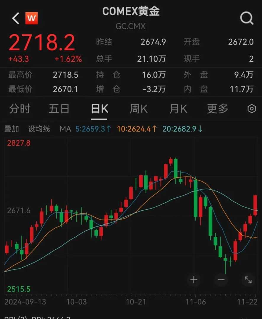 美元继续上涨,美元指数上涨0.4%。而伦敦黄金现货价格则大涨1.74%,本周录得五连阳,周涨幅达5.97%;COMEX黄金期货价格也上涨1.62%,本周涨幅达5.76%。