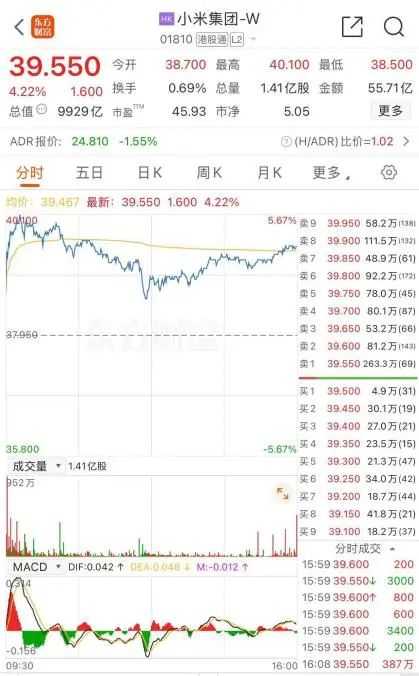 值得注意的是,小米集团-W的股价在午后稍许回落后再度上扬,最终收盘上涨4.22%,报收于39.55港元/股。经纪商实时数据显示,盈透证券、恒生证券、富途证券等席位买入量较大,而摩根大通、巴克莱等券商席位则位于卖出量前列。自2018年7月9日在港交所主板挂牌上市以来,小米集团的股价走势虽然波折,但近年来呈现稳步上涨的趋势。