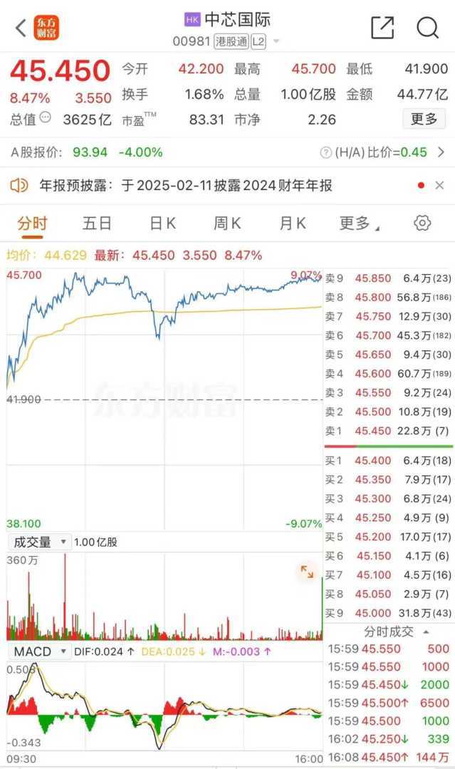 此外,在2月4日的交易中,151只AH股多数实现上涨。其中,半导体股票表现尤为突出,上海复旦涨幅超过13%,华虹半导体涨幅超过12%,中芯国际涨幅超过8%。中芯国际的股价在盘中更是一度创下历史新高。华泰证券认为,随着出行、消费和跨境游数据的回暖,消费市场活力显著提升。展望后市,港股市场或维持震荡格局,建议投资者根据盈利预期变化调仓,并把握科技股价值重估机会。