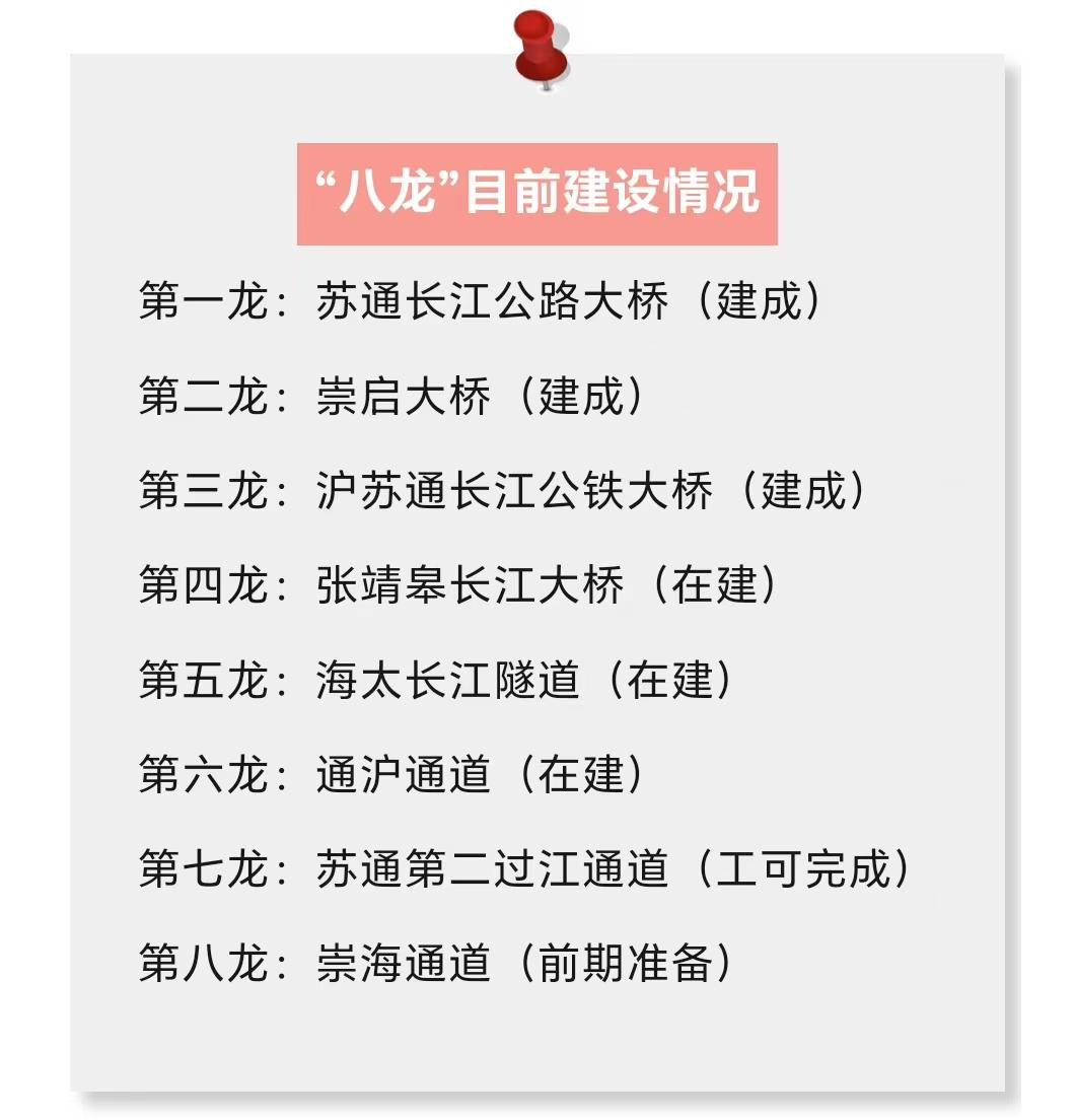 然而,对于新晋“万亿城市”南通而言,三条跨江通道显然无法满足其日益增长的要素流通需求。为此,南通依托长三角一体化发展国家战略,将过江通道建设作为重中之重,创造性地提出了“八龙过江”的构想。这一构想旨在在南通166公里的长江岸线上,建设8条过江通道,以满足南通与苏南、上海之间的交通需求。