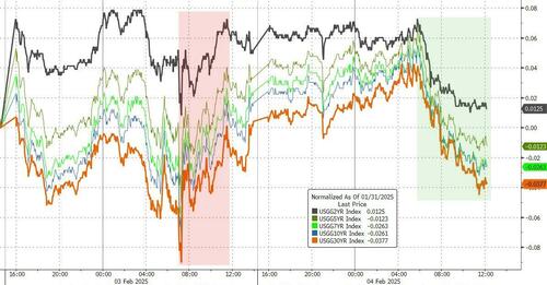 随着加拿大和墨西哥获得为期30天的关税暂缓执行期,过去几个月在关税可能推高通胀的担忧下承压的美债价格,本周也出现了反弹。10年期美债收益率周二尾盘下跌2.8个基点,至4.515%,周一盘中曾触及12月中旬以来的最低点。