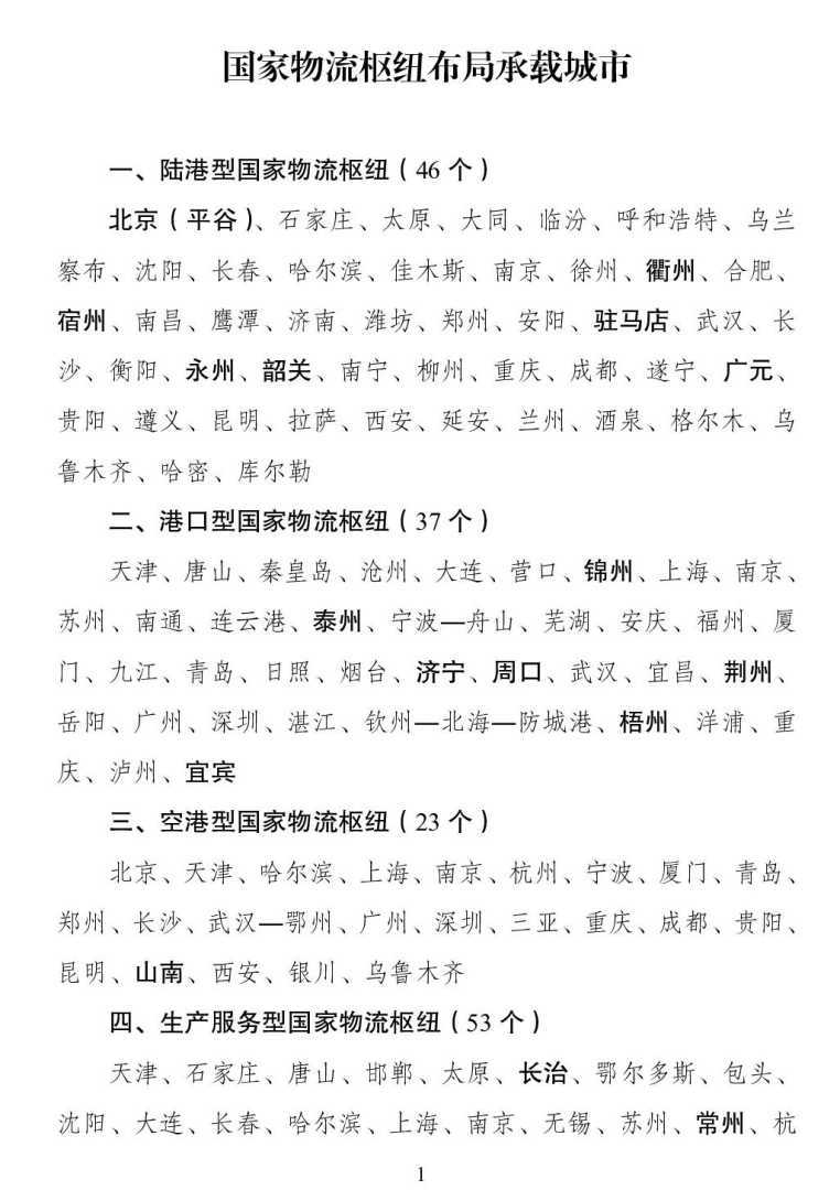 国家发改委发布国家物流枢纽布局优化调整方案