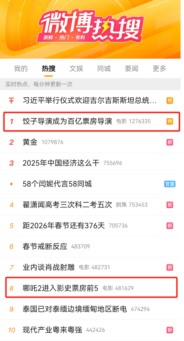 目前,《哪吒之魔童闹海》的票房仍在持续飙升。截至本文发稿,其票房已超越前作《哪吒之魔童降世》,两部影片累计票房突破百亿元大关。饺子导演也因此荣登微博热搜首位,成为新晋百亿票房导演。