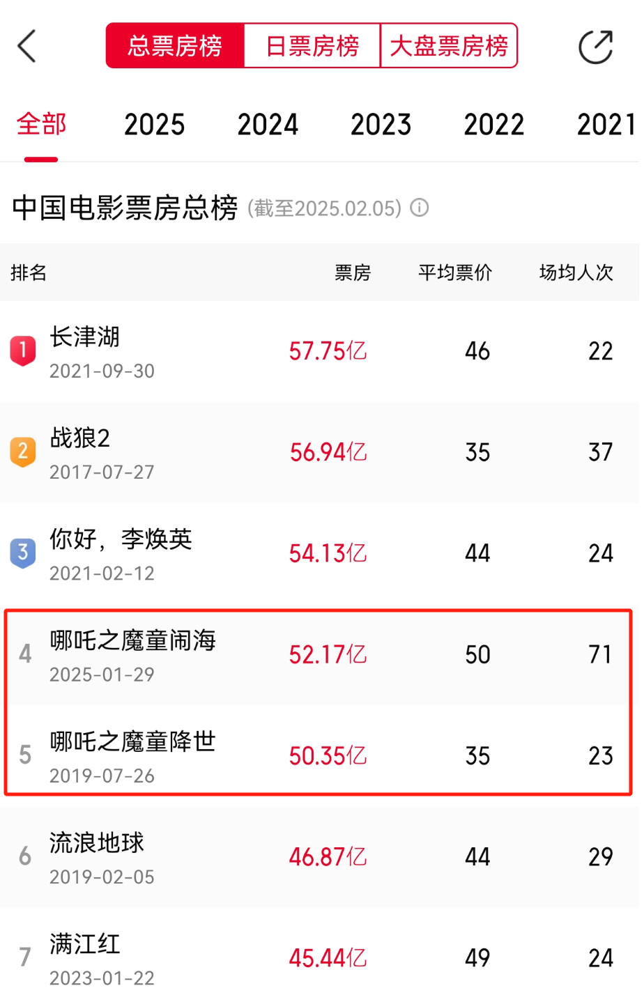 据猫眼专业版数据,截至2月5日,《哪吒之魔童闹海》票房已超52亿元(含预售),成功超越前作《哪吒之魔童降世》。上映以来,该片累计逆跌5次,票房与口碑双丰收。