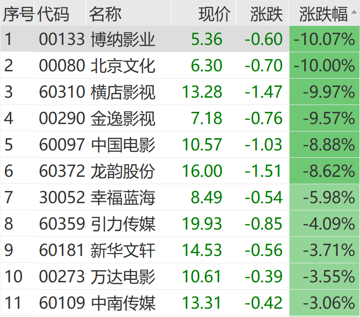 影视股表现分化