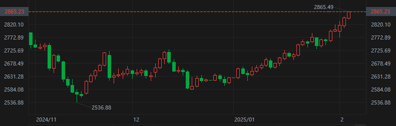 发稿前,现货黄金价格已突破2860美元/盎司关口,最高报价达到每盎司2865.49美元,这已是连续第五个交易日刷新历史纪录。年初至今,黄金价格已累计上涨超过9%,而前一年度的涨幅更是超过了27%。