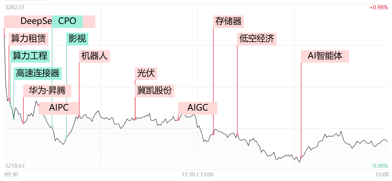 A股市场全天高开后震荡分化,DeepSeek概念引领AI应用端热潮