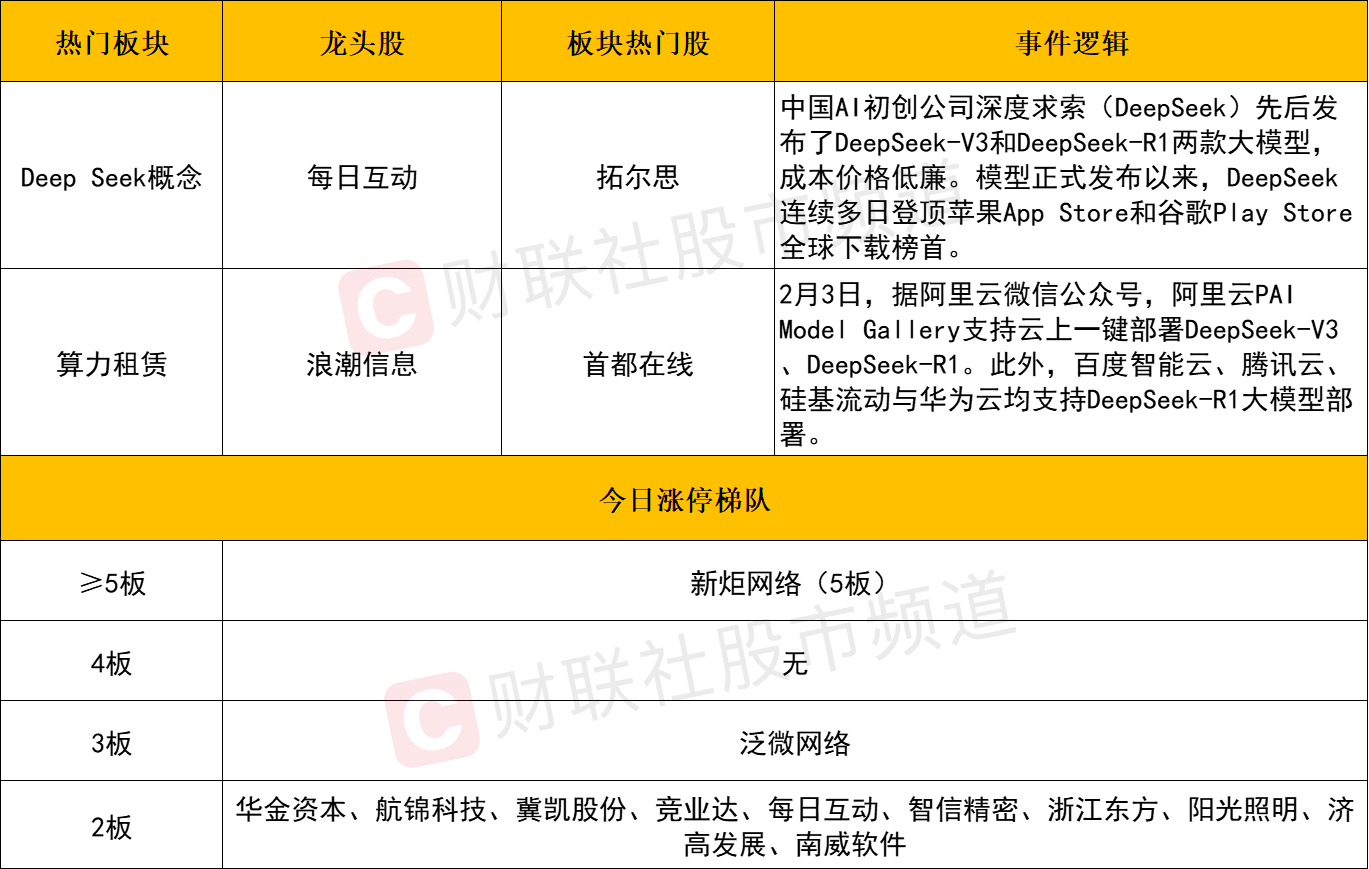 DeepSeek概念股再度全线爆发,每日互动、航锦科技、安恒信息、美格智能、拓尔思、南威软件等多只个股涨停。消息面上,中国AI初创公司深度求索(DeepSeek)发布了DeepSeek-V3和DeepSeek-R1两款大模型,成本价格低廉,且连续多日登顶苹果App Store和谷歌Play Store全球下载榜首。DeepSeek在算力成本节约和开源方面取得了重大突破,降低了AI技术的门槛,使得更多中小厂商能够参与AI技术的开发和应用,因此AI应用端或将直接受益。同时,云计算、算力租赁概念也走强,多只个股涨停。Deepseek的突破进展对AI+产业逻辑构成重大利好,预计后续算力租赁需求将增加。