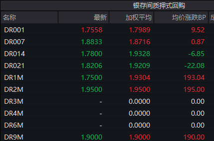 银行间回购利率方面呈现涨跌不一的态势。