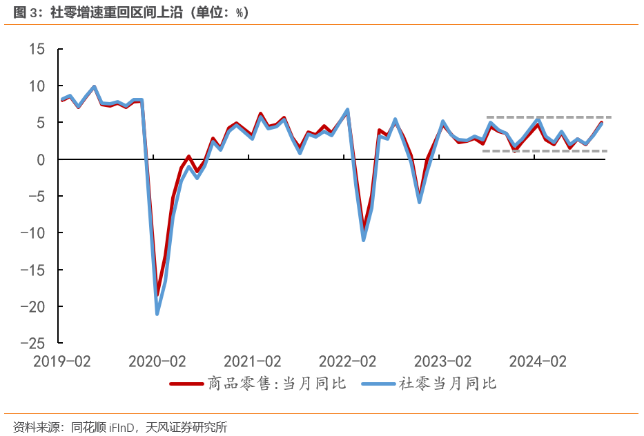 总体来看,得益于以旧换新等政策以及房价降幅的短期缓和,年内消费有望继续保持在2023年以来社零区间的上沿。四季度的消费高增长为确保全年5%的增速目标实现奠定了坚实基础。