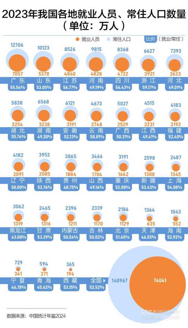 具体来看,各地就业人员与常住人口的比例差异显著。一些省份就业人员占常住人口比重超过55%,而一些省份则仅为40%出头。21世纪经济研究院指出,各省应根据自身就业人员现状,出台相关政策以稳定就业数量,同时发展新就业形态,容纳更多就业人员。此外,各地应继续放宽落户政策,将新就业职工、外来务工人员等纳入公租房保障范围,以促进公共服务均等化,吸引劳动年龄人口流入。