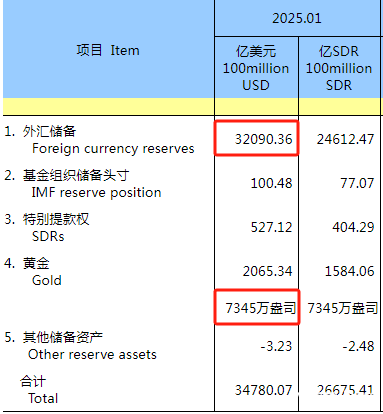 2025年2月7日,国家外汇管理局公布最新官方储备资产情况,截至2025年1月末,我国外汇储备规模为32090亿美元,黄金储备规模为7345万盎司,连续三个月增持黄金。分析师指出,我国外汇储备有望在当前水平上保持基本稳定,央行增持黄金仍是大方向。