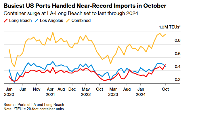 供应链上的企业和个人都在密切关注特朗普的政策动向,担心其会兑现提高对中国进口商品关税的威胁。因此,许多企业选择在年底前加大进口力度,即使这通常是港口较为平静的时期。