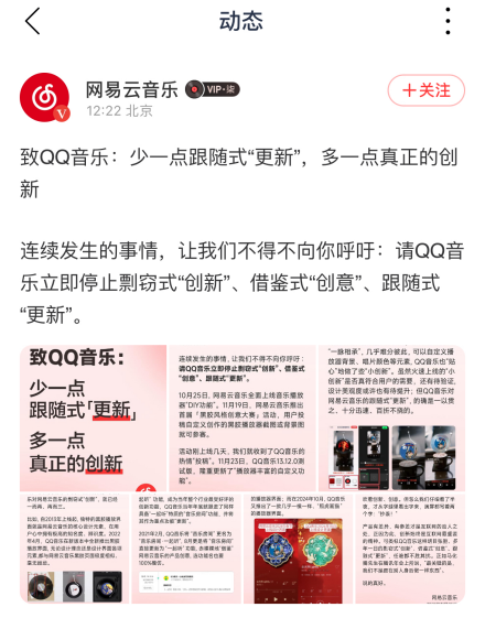 两大音乐APP“正面交锋”!11月25日,网易云音乐在各大平台公开向QQ音乐发起挑战,指责其存在剽窃式“创新”行为。