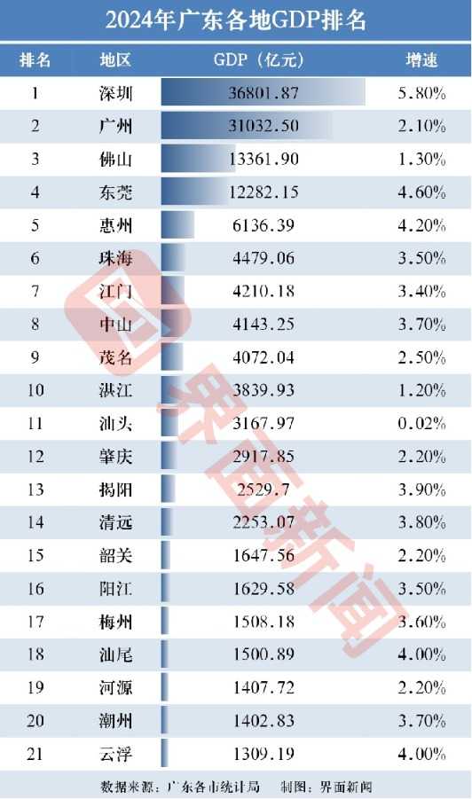 广东省2024年经济数据揭晓:深莞惠领跑,广佛增长乏力