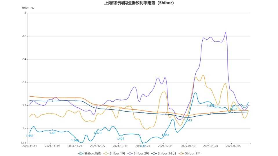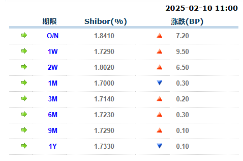 上海银行间同业拆放利率(Shibor)短期品种止跌为升,隔夜品种继续与7天、14天品种倒挂。具体来看,隔夜Shibor上涨7.20BP,报1.8410%;7天Shibor上涨9.50BP,报1.7290%;14天Shibor上涨6.50BP,报1.8020%。