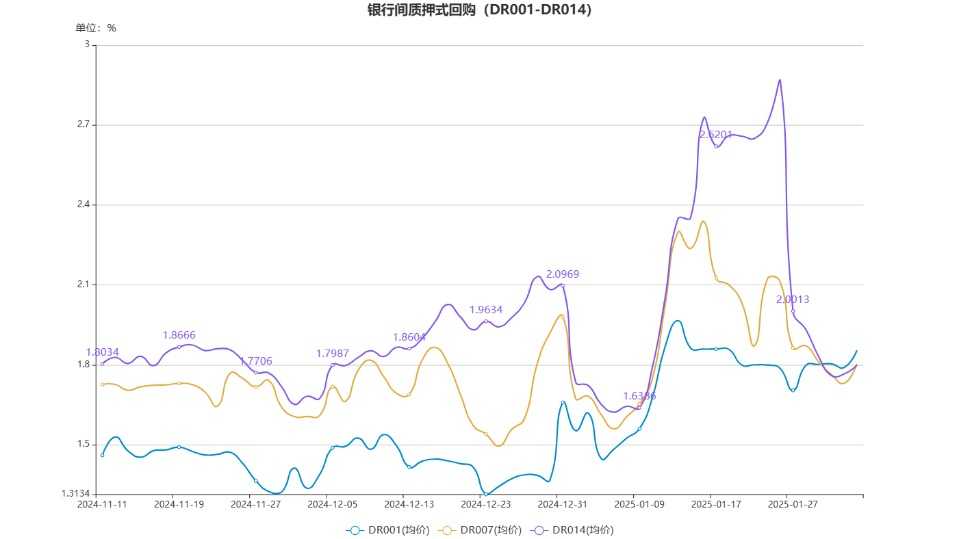银行间质押式回购市场方面,短期品种量价齐升,R007成交占比走高至13.3%。具体看,DR001、R001加权平均利率分别上行6.4BP、8.0BP,报1.8541%、1.852%,成交额分别增加1468亿元、27667亿元;DR007、R007加权平均利率分别上行7.3BP、6.7BP,报1.8038%、1.7986%,成交额分别增加31亿元、5889亿元;DR014、R014加权平均利率分别上行3.3BP、6.5BP,报1.7985%、1.8272%,成交额分别增加22亿元、934亿元。