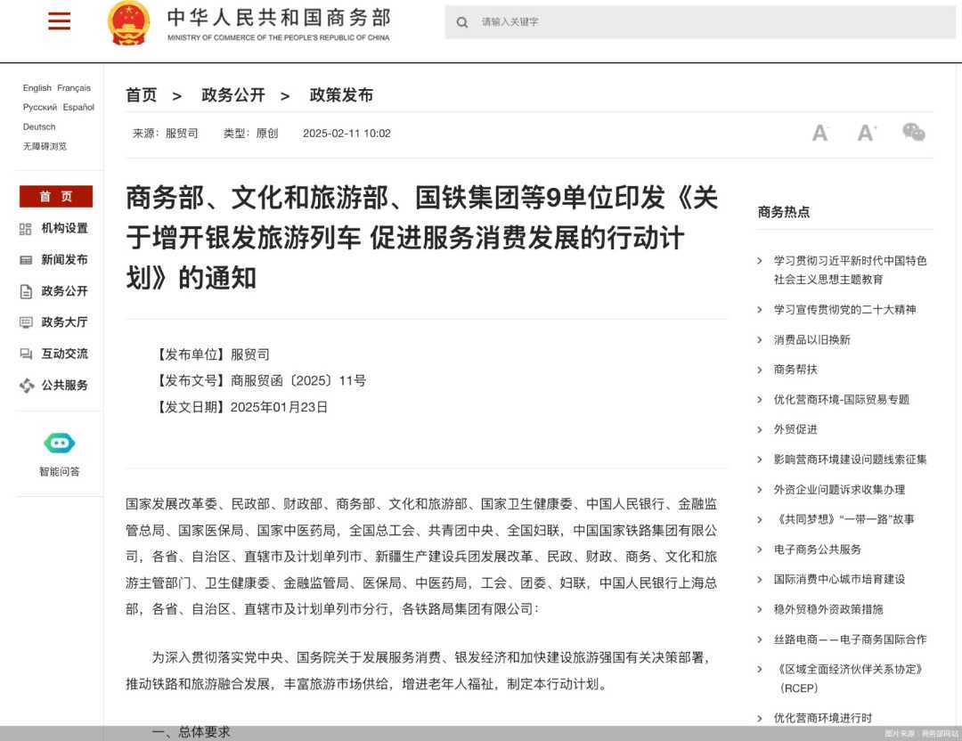 商务部等发布银发旅游列车行动计划,强化适老化服务
